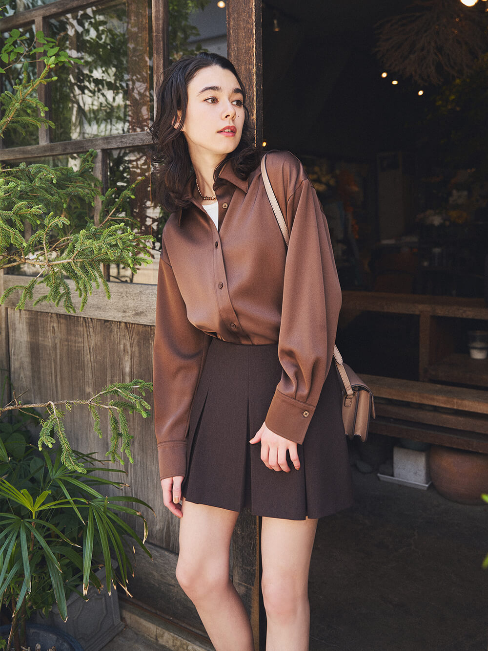 寬鬆的尺碼和適度的垂墜感,穿上即突顯成熟休閒的氣質,配上迷你百褶裙更添活力感。
