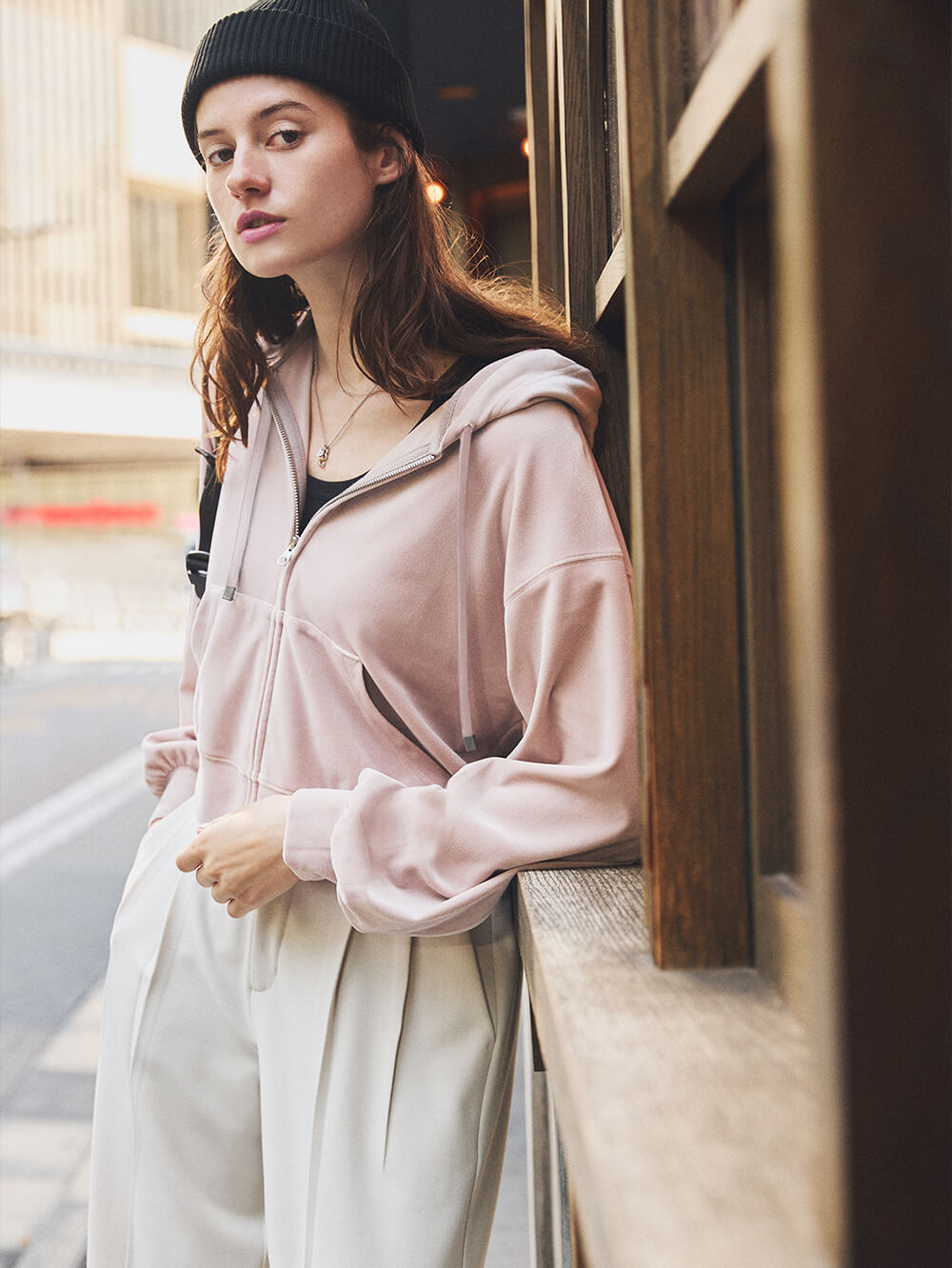 絲絨材質的短版外套是休閒日常的必備單品,讓你輕鬆自在襯出最適合自己的穿搭。