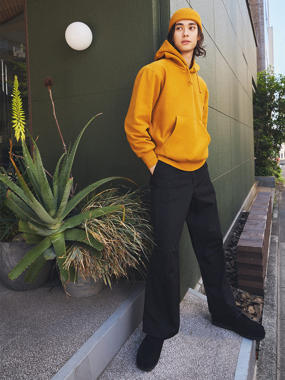 Heavy Weight 休閒半拉鍊上衣,加上HEAT-PADDED 夾層背心和帶有褪色感的牛仔寬褲。整體的形象相當清新。