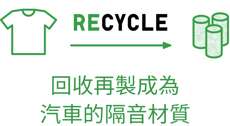 將100%聚酯纖維服飾,再生成為聚酯纖維原料。其他材質則可加工為替代燃料或汽車隔音材料,對減少二氧化碳作出貢獻。