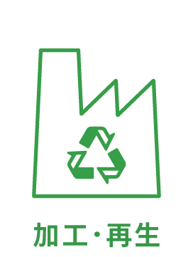 我們向世界各地的難民・流離失所者提供合乎需求的服裝。將回收再利用的燃料或隔音材料送往工廠,聚酯纖維的一部份則變身為再生聚酯纖維的原料「BRING Material™」。