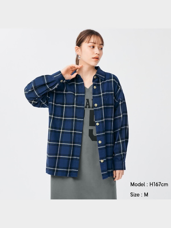 フランネルオーバーサイズシャツ(長袖)(チェックB)+X