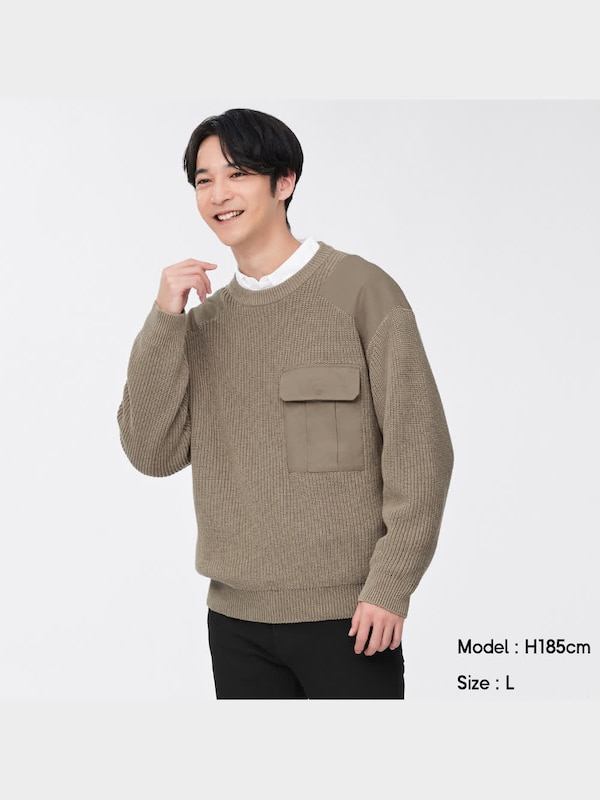 ワイドフィット布帛コンビネーションセーター(長袖)NT+E
