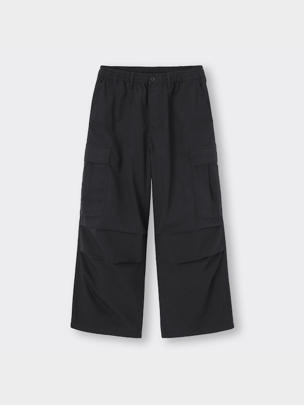 ボリュームのあるスーパーワイドシルエットを取り入れたトレンド感満載のカーゴパンツ。綿とポリエステルを組み合わせて、ハリのあるしっかりとした素材にしています。裾のコードでフォルムの変化を楽しめるので、スタ イリングに合わせてさまざまな着こなしが楽しめるのもポイント。収納力抜群のサイドポケットがデザインのアクセントとしても活躍します。お客様からの要望を受けベルトループつきにアップデートしております。