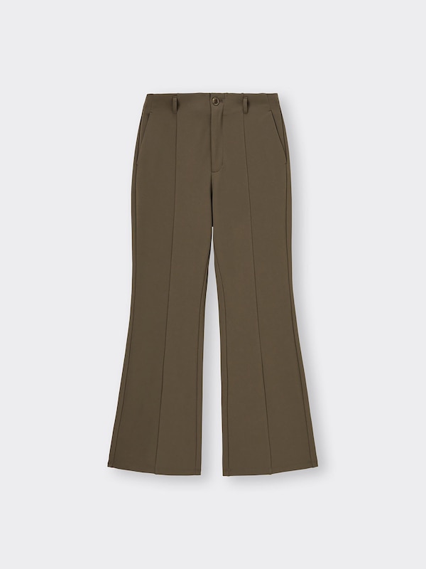 伸縮性のあるカットソー素材で快適なはき心地を叶えるフレアパンツ。高めの膝位置から裾にかけてなだらかに広がるフレアシルエットと、フロントのセンターシームが脚を細く、長く見せてくれます。カットソーでもきれいめな表面感なので、あらゆるシーンで活躍。パンプスとのきれいめスタイルはもちろん、スニーカー合わせでカジュアルにも着こなせます。ウエスト後ろゴムからストレッチ素材を活かした仕様に変更し、着用時の締め付け感によるストレスを感じさせにくい。股上を低くしてローウエストにアップデートすることで、腰周りの丸みを軽減する。逆に股下丈は長くして全体のバランスを整えて、よりスタイルアップ効果が狙えるようにしました。