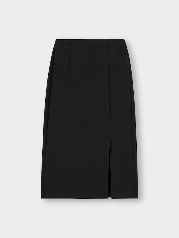 ウエスト:左ホック留め・ファスナー開き・総ゴム入り(調節不可),裾:フロントスリットあり,裏地あり