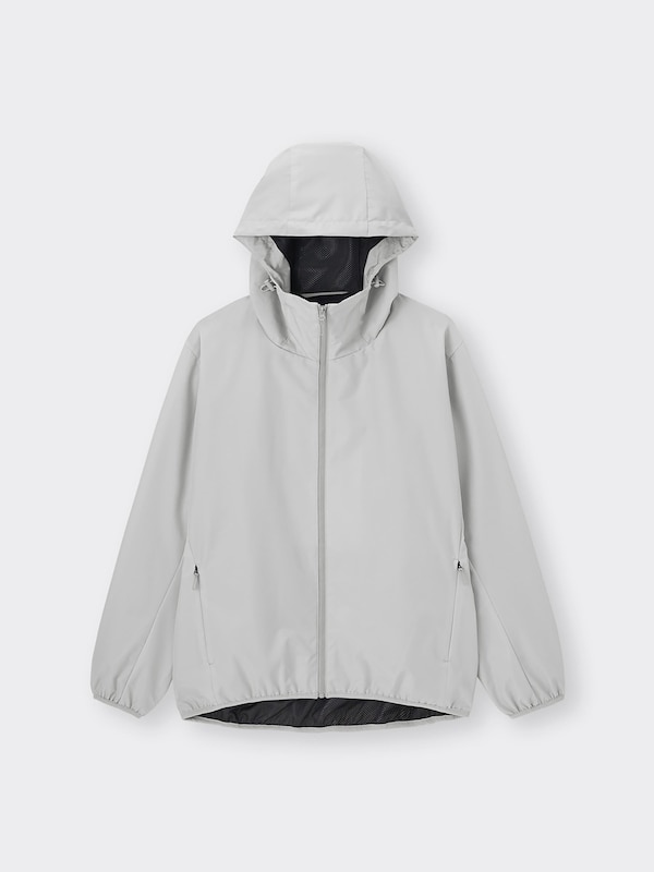 フード:ドローストリング機能あり,前中央ファスナー開き,ポケット:前×2(左右・ファスナー付き),ベンチレーションあり(背面上部),裏地あり