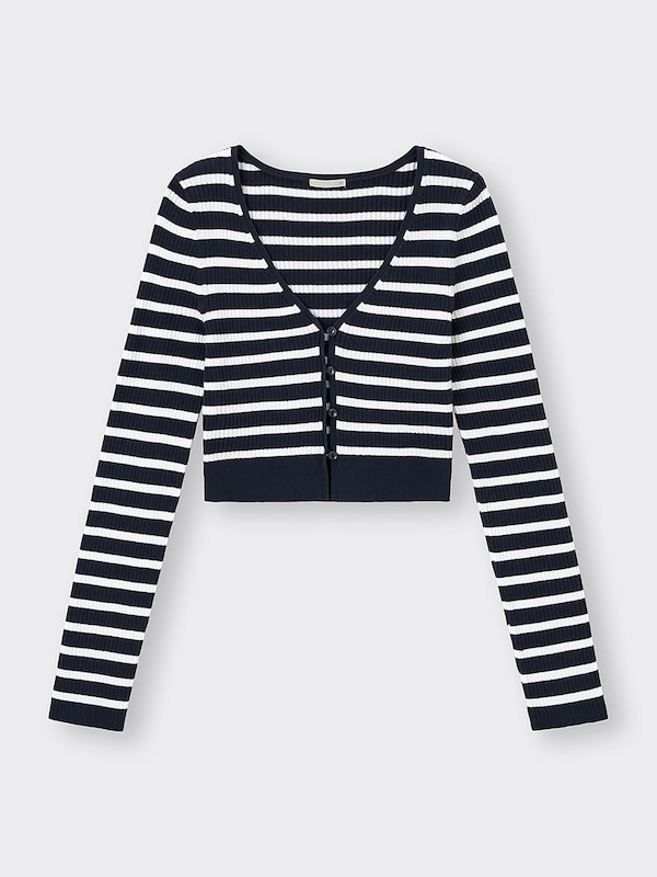 UVカットクロップドカーディガン(長袖)(ボーダー)