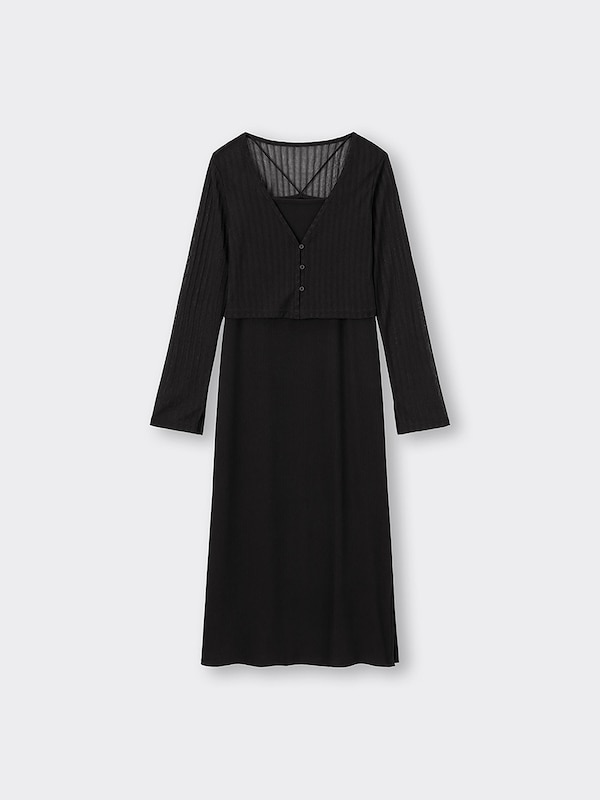 [ワンピース]ポリエステル97%(リサイクルポリエステル繊維を50%使用)・ポリウレタン3%,[カーディガン]ポリエステル100%(リサイクルポリエステル繊維を50%使用)