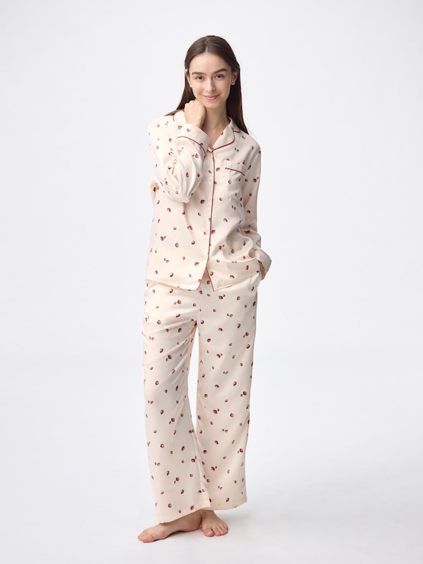 サテンパジャマ(長袖&ロングパンツ)(ストロベリー)