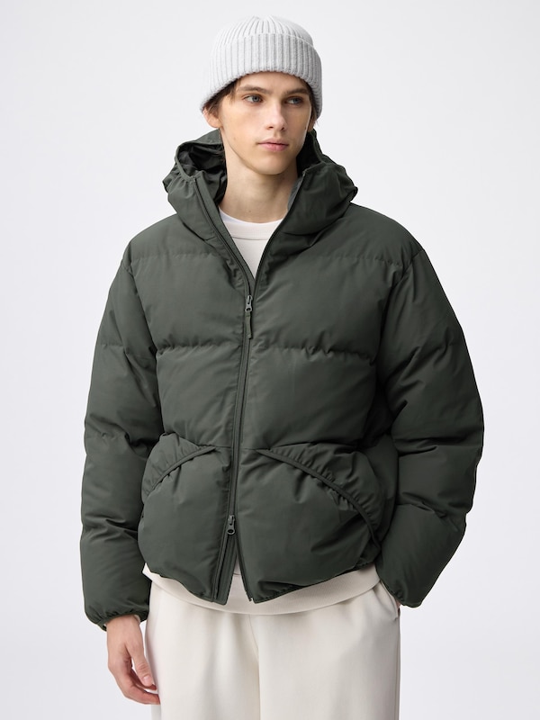 表地:ポリエステル100%(リサイクルポリエステル繊維を48%使用),裏地:ポリエステル100%,中わた:ポリエステル100%(リサイクルポリエステル繊維を100%使用)