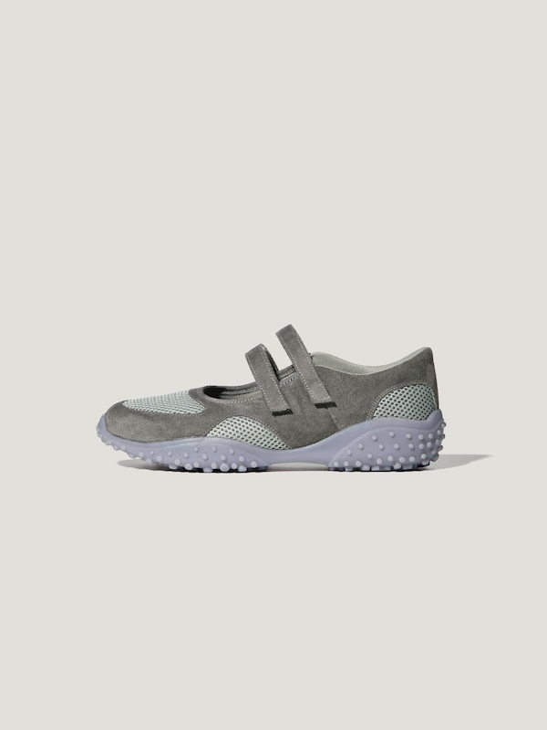 甲材:[本体]ポリエステル93%(リサイクルポリエステル繊維を63%使用)・ポリウレタン7%,[別布]ポリエステル100%(リサイクルポリエステル繊維を50%使用),底材:合成底