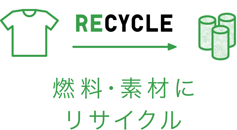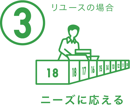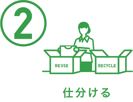 リユースでそのまま活用するものと、リサイクルで新たに生まれ変わらせるものとに仕分けます。