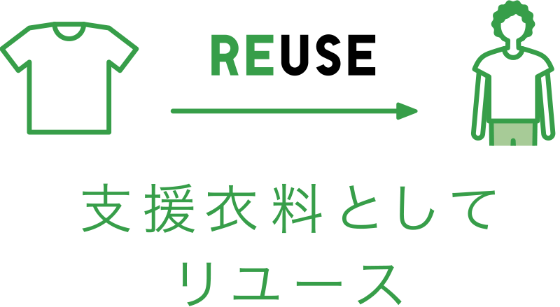 わたしたちは、ジーユー店舗で回収した服をリユースし、国連難民高等弁務官事務所(UNHCR)や世界中のNGO・NPOとともに、難民キャンプや被災地への緊急災害支援など、世界中の服を必要としている人たちに届けています。また、リユースできない服は、車の防音材への加工などへリサイクルしています。