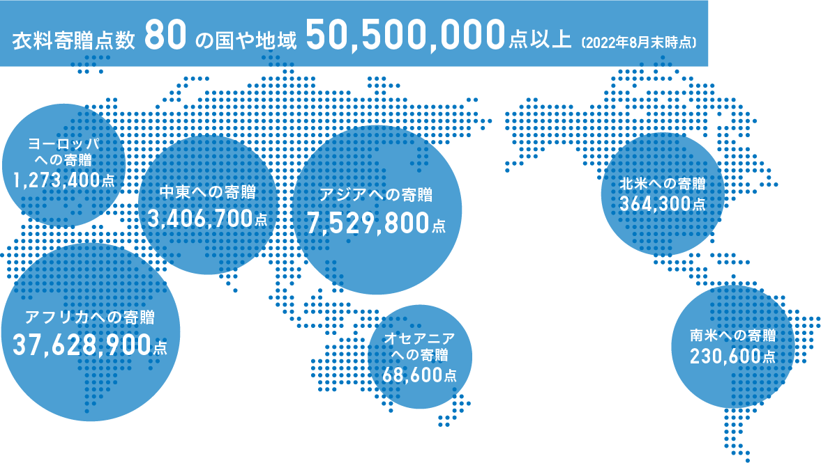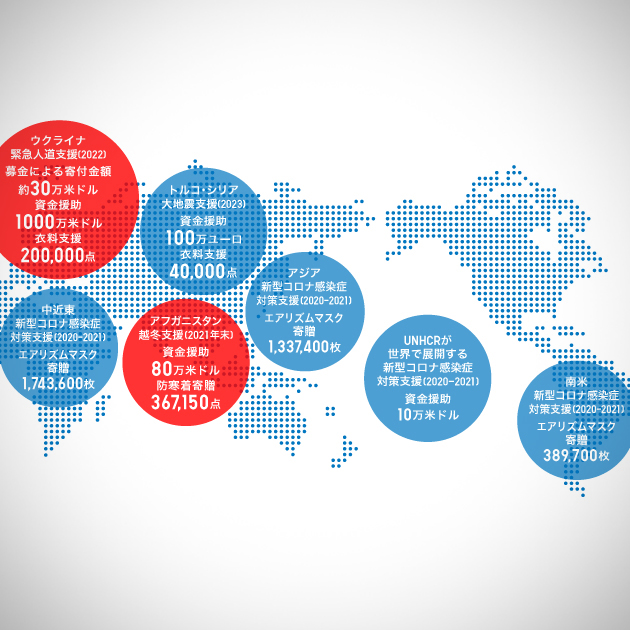 ※UNHCRを通した難民などへの寄贈に加え、その他NPO・NGOへの寄贈も含む