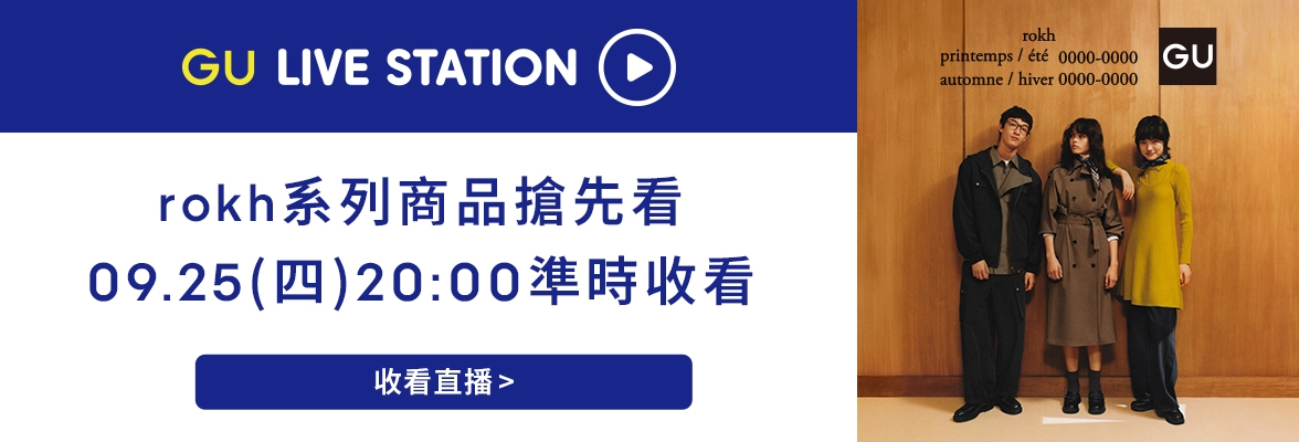 - ※網路商店開賣時間為9:00am.以台灣GU網路商店系統時間為準,實體店鋪販賣時間以各店鋪營業時間為準