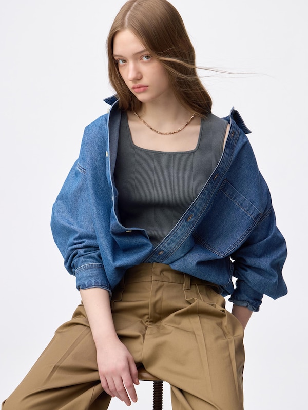 Ribbed Knitted Square Neck Tank Top